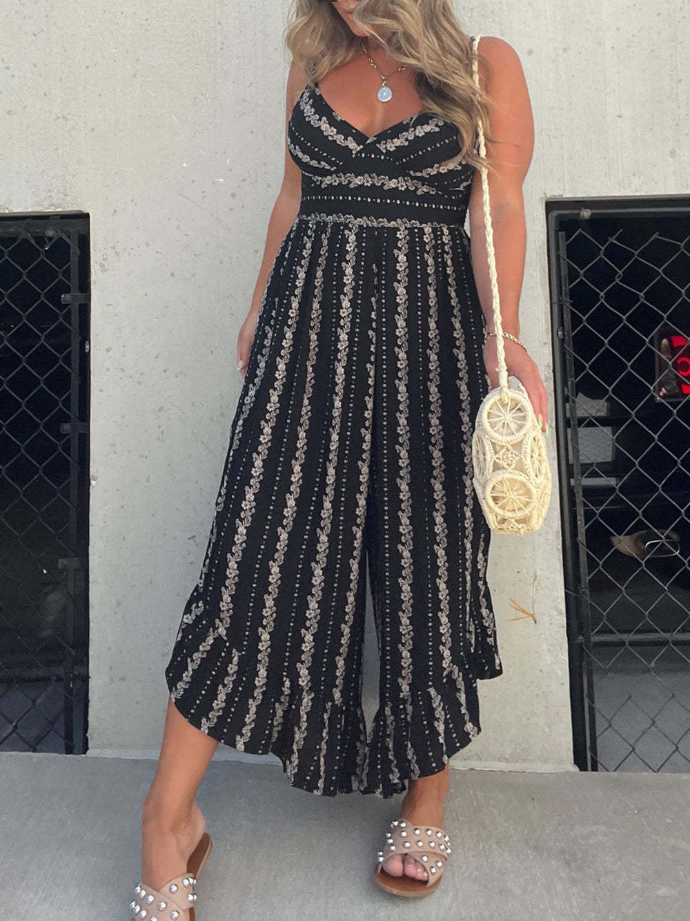 Versatile and easy to style, this jumpsuit is a perfect pick for various occasions. Dress it up with wedges and statement jewelry for a chic boho look, or keep it casual with sandals and a wide-brimmed hat for a laid-back summer vibe.