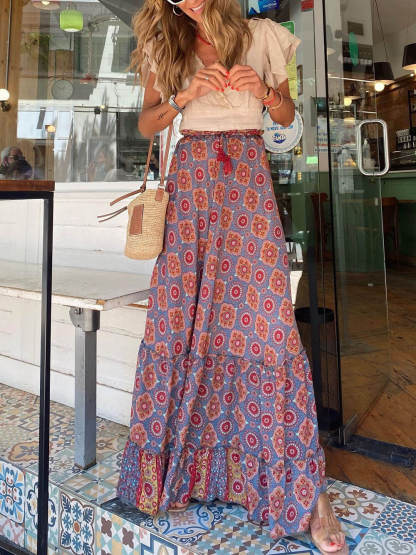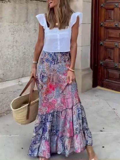 Bohemian Elegance: Embrace the essence of bohemian style with this stunning maxi skirt. Its vibrant and intricate print captures the Boho spirit, making it a standout piece in your collection.