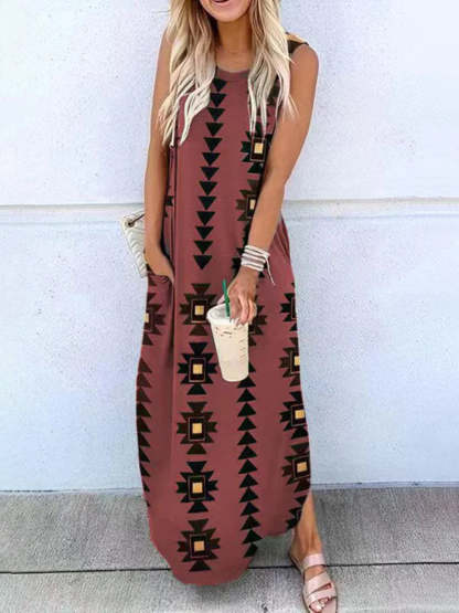 ?Step into bohemian paradise with our Celina Geometric Hippie Print Pocketed Knit Maxi Dress. Embrace your free-spirited side with this effortlessly chic dress that combines comfort and style in one stunning piece. The mesmerizing geometric print adds a touch of boho charm, while the flowing maxi length creates a graceful silhouette. With its convenient pockets, this dress offers both fashion and functionality. Crafted from high-quality knit fabric, it provides a soft and cozy feel, making it perfect for all-day wear. Whether you're attending a music festival or enjoying a beach getaway, this dress is a true statement of bohemian elegance. Get ready to turn heads and embrace your inner boho goddess with our Celina Geometric Hippie Print Pocketed Knit Maxi Dress.