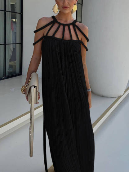 Introducing our Draped Braids Cover-Up Maxi Dress, a stunning piece that seamlessly blends elegance with beach-ready style. Crafted with lightweight fabric and featuring intricate braided details, this maxi dress is the perfect choice for poolside lounging or seaside strolls.
