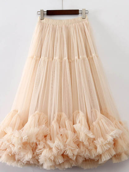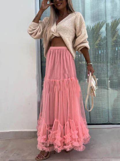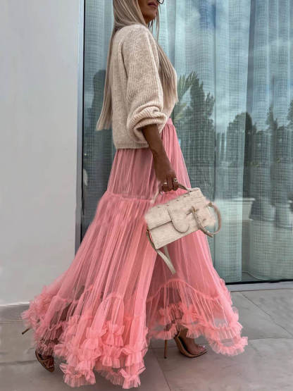 Elevate your wardrobe with our Elegant Tulle Stretch Waist Paneled Pleated Maxi Skirt. It's the ideal choice for those moments when you want to radiate poise and charm.