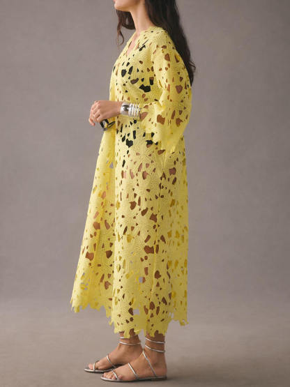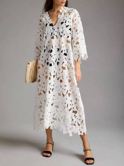 Introducing the "Floral Eyelet Lace" Cover-Up Beach Midi Dress - Your Ultimate Beachside Elegance!