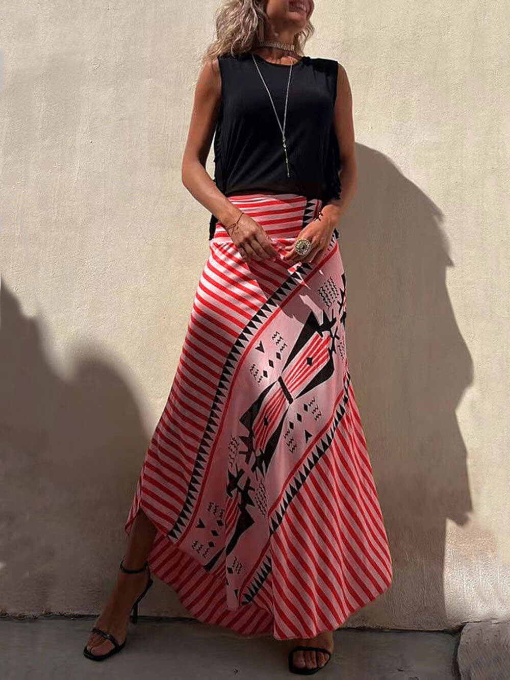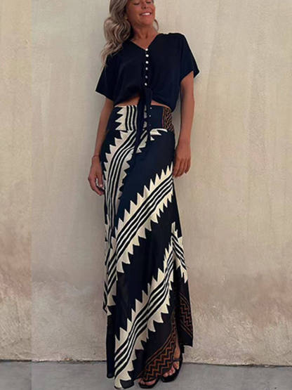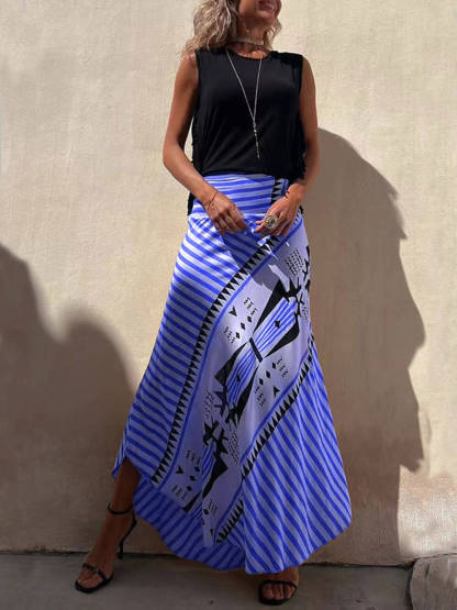 Geometric Print Elastic Waist Maxi Skirt