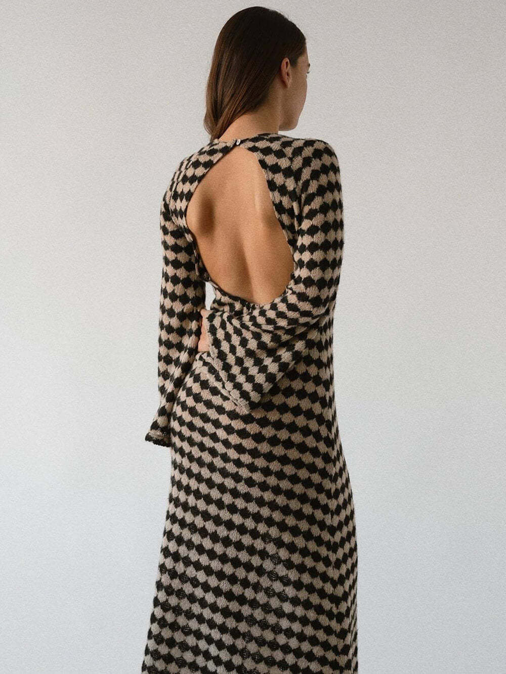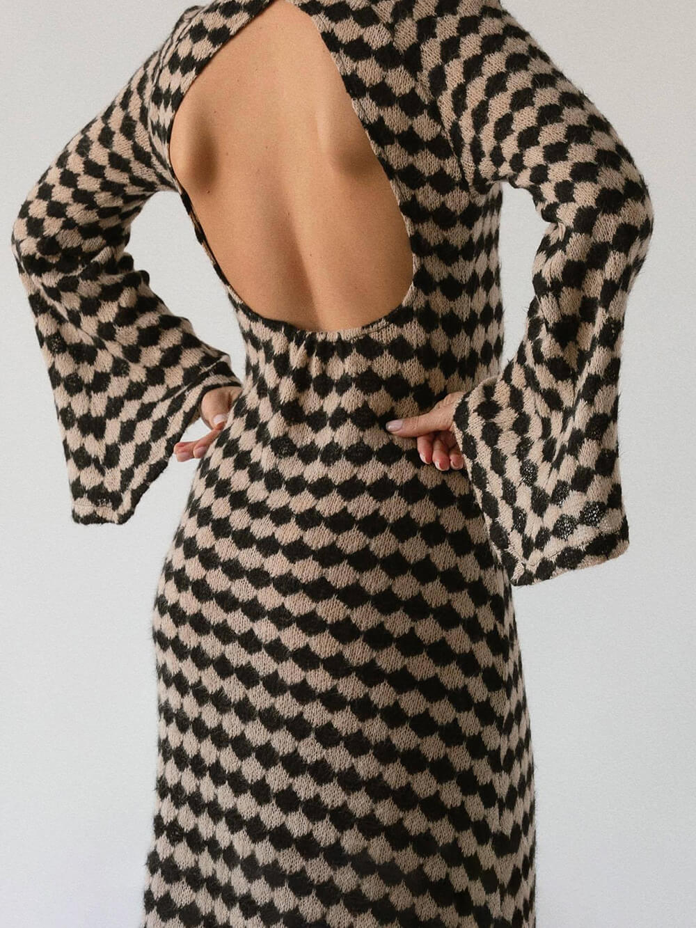With its eye-catching geometric patterns, this knitted dress is a walking canvas of contemporary art. The intricate designs add a touch of sophistication and intrigue to your look, making it perfect for gallery openings, cultural events, or simply when you want to showcase your unique taste.