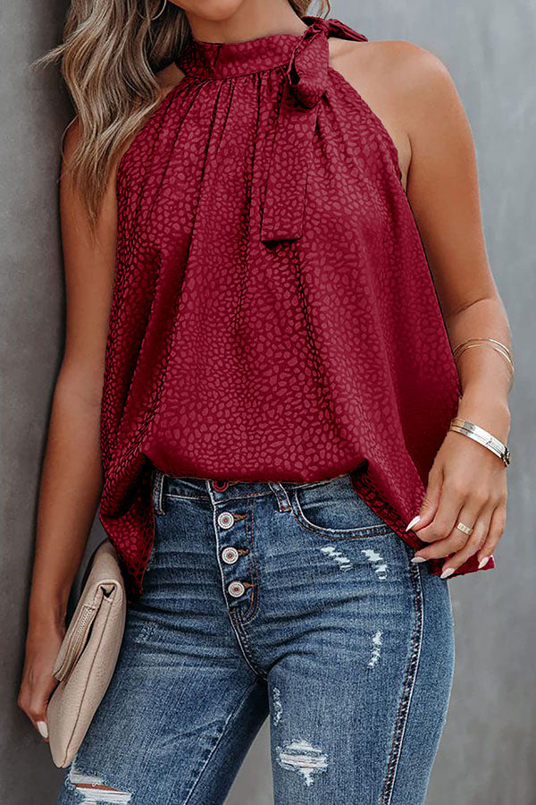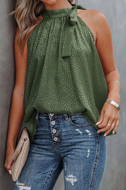 Ivette Satin Embossed Leopard Tie Blouse