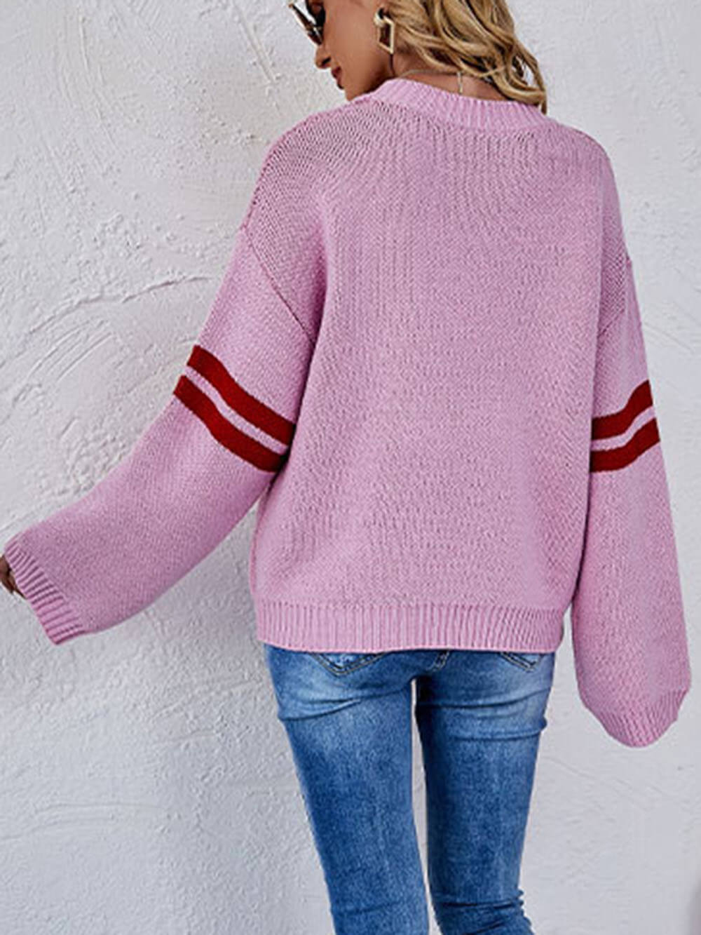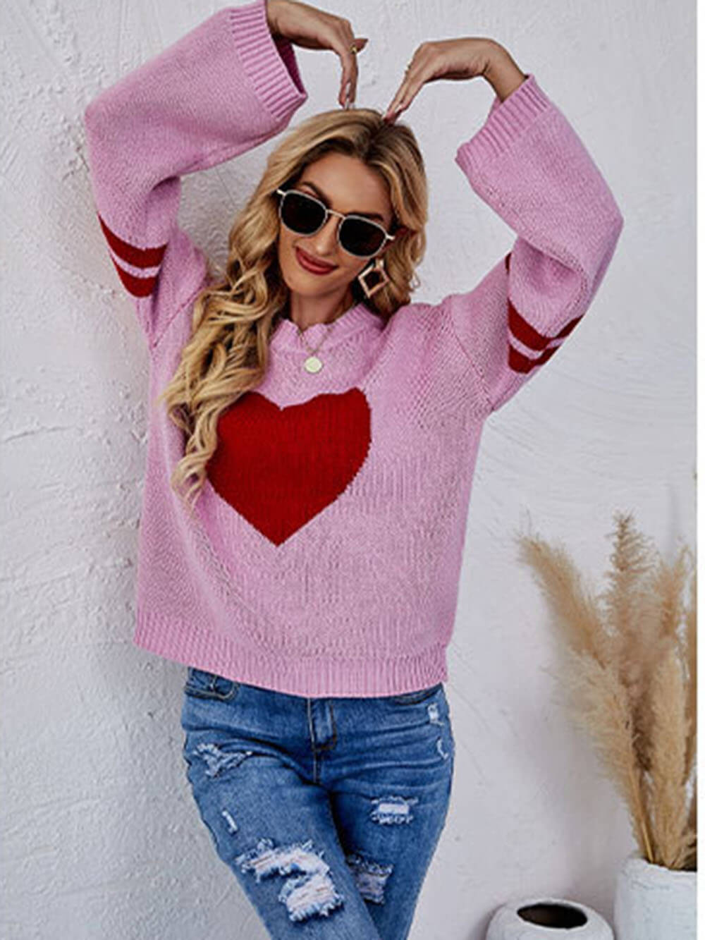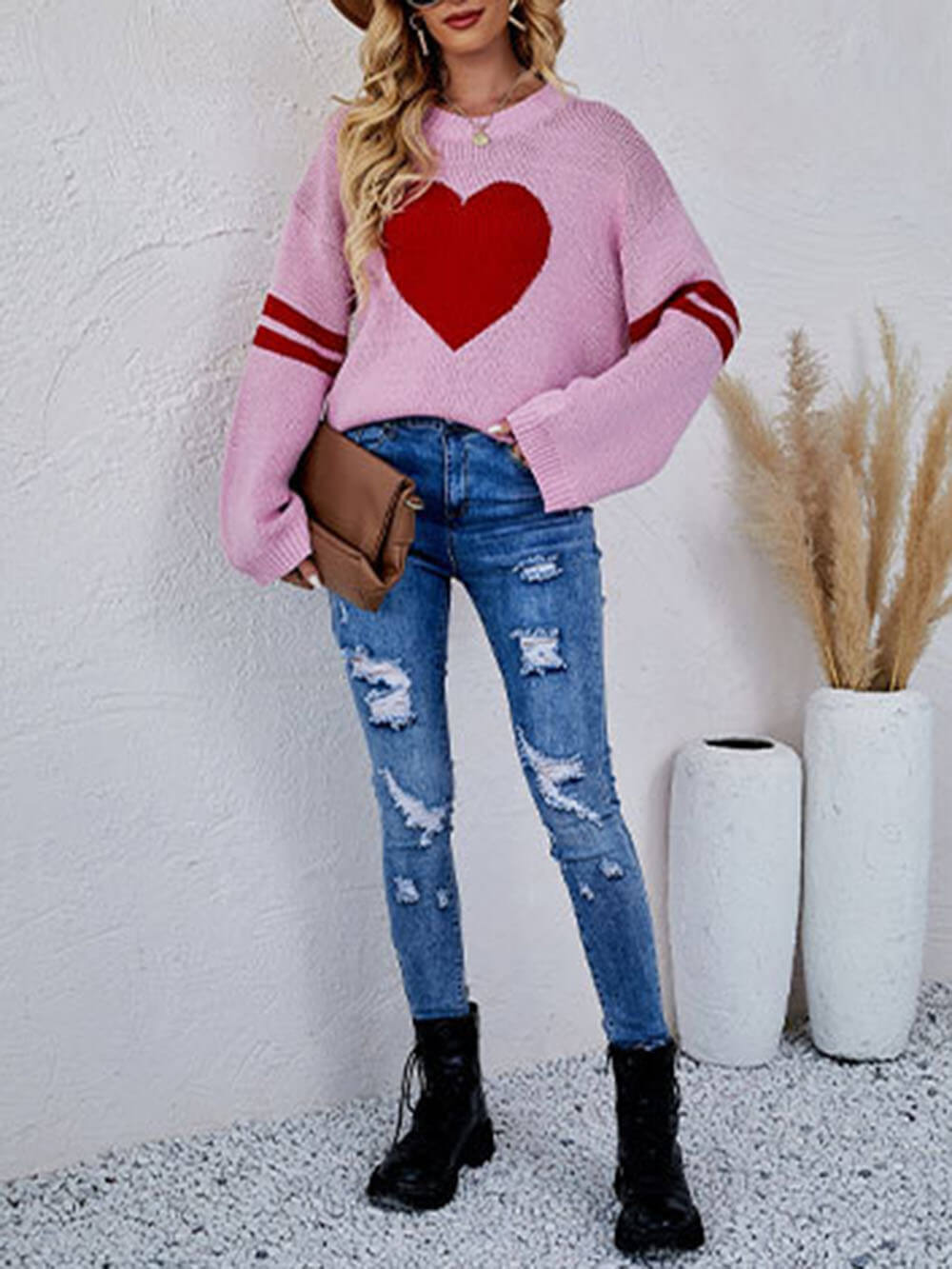 Love in Every Stitch: This sweater features a unique patchwork design with the word "Love" knitted into it, adding a touch of love and charm to your look.