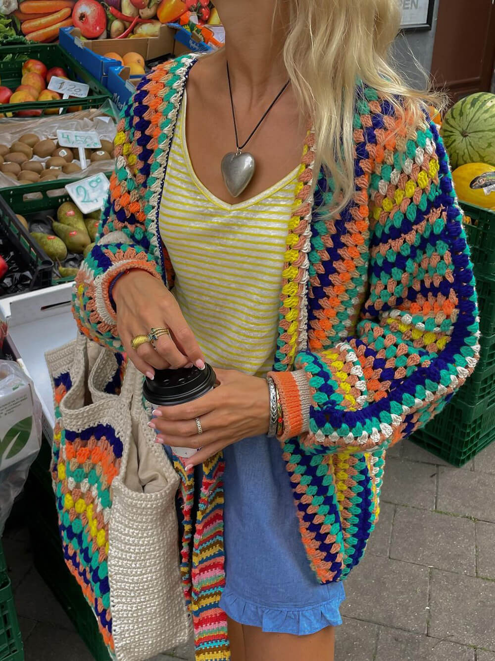 Pair the Rainbow Stripe Crochet Loose Cardigan with jeans for a casual and laid-back look, or dress it up with a skirt and heels for a more sophisticated ensemble. The versatility of this cardigan knows no bounds, making it a staple in your fashion repertoire.