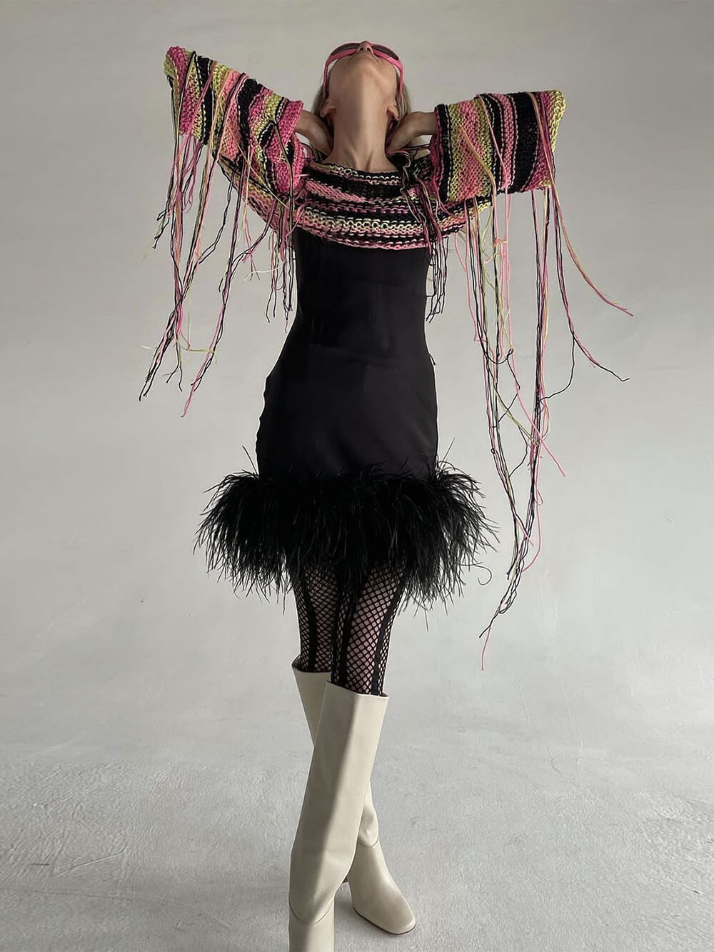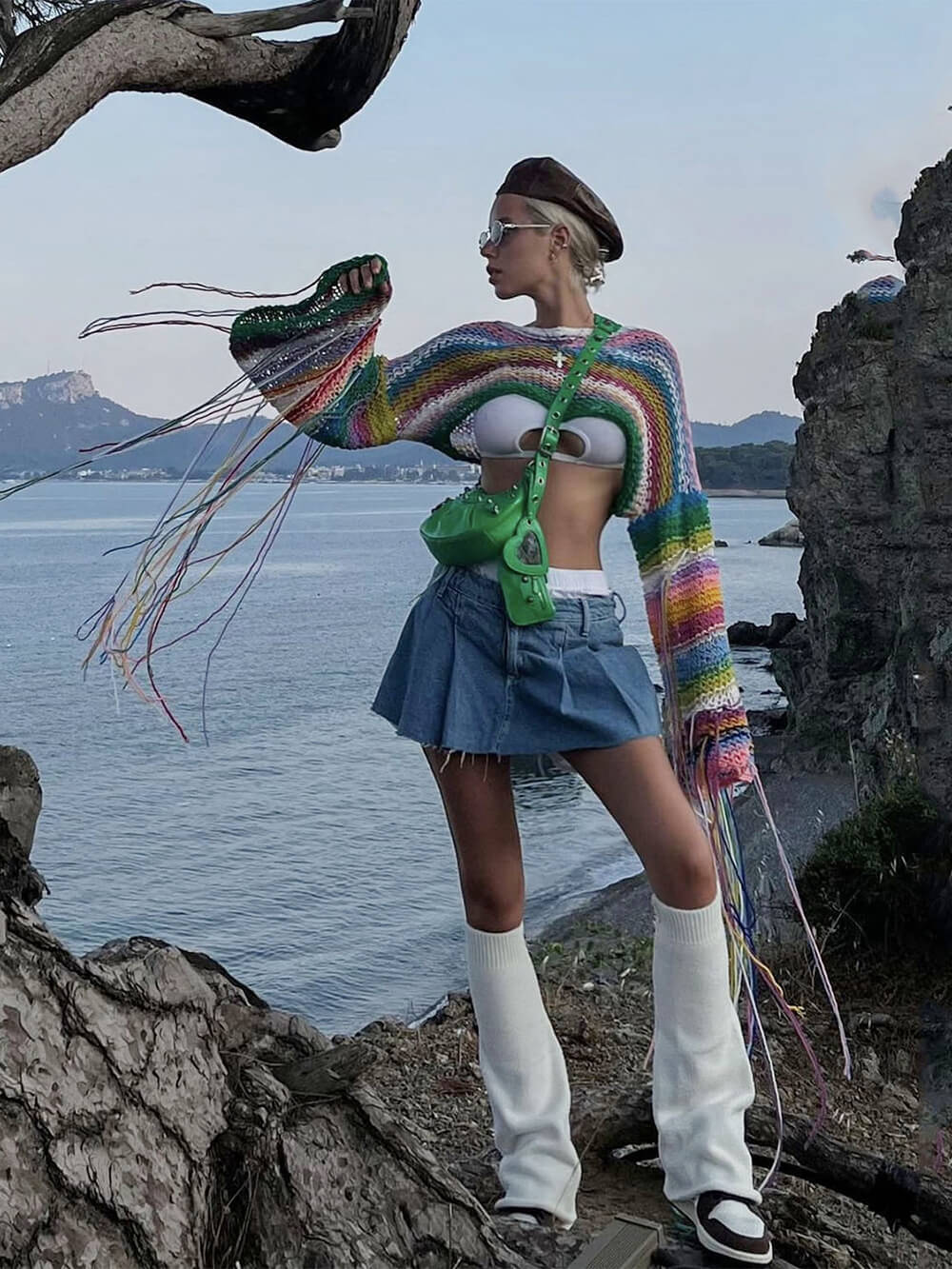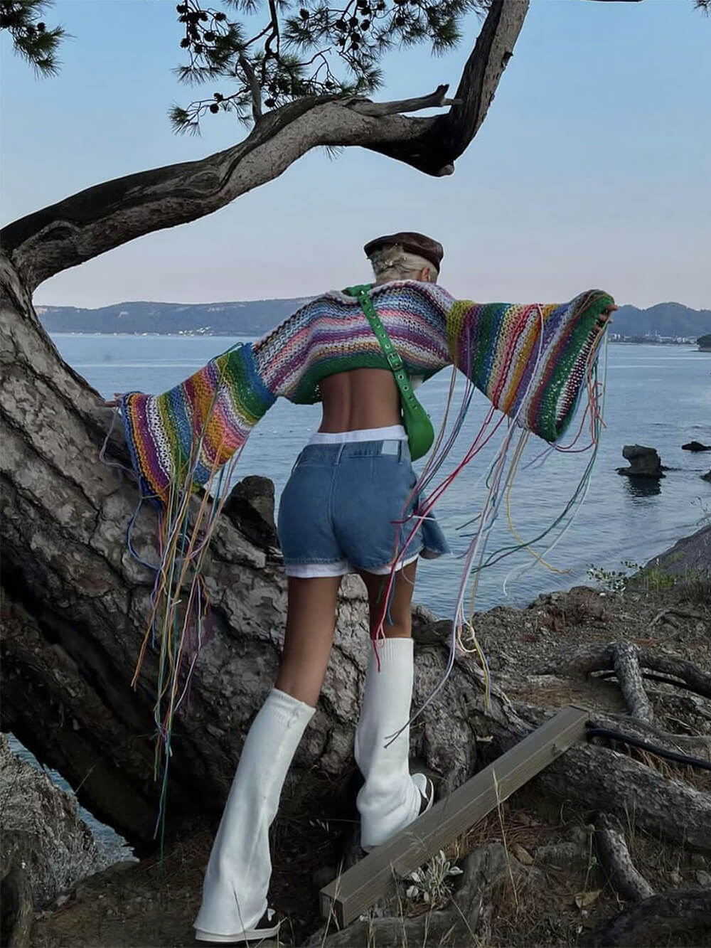 Wrap yourself in a cascade of colors with this unique and eye-catching sweater. The rainbow tassels along the hem add a playful and stylish touch that's perfect for adding some personality to your outfit. Whether you're heading out for a casual gathering or just want to bring some cheer to your day, this sweater has got you covered.
