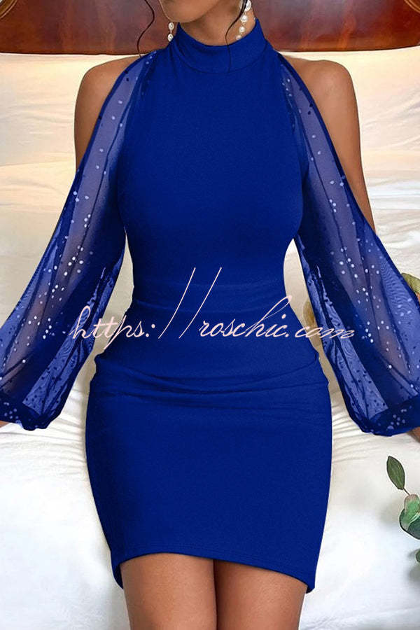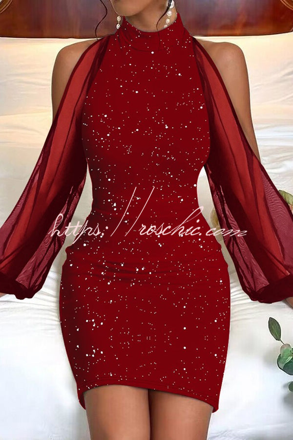 Sahara Round Neck Tulle Floral Print Balloon Sleeve Mini Dress