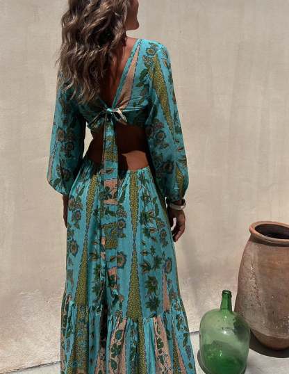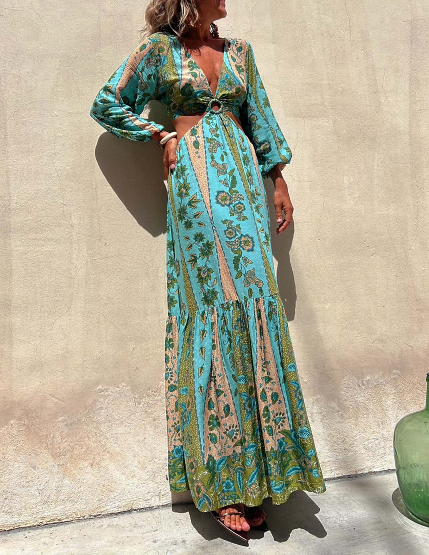Surprised By You Printed Side Cutout Elastic Waist Maxi Dress