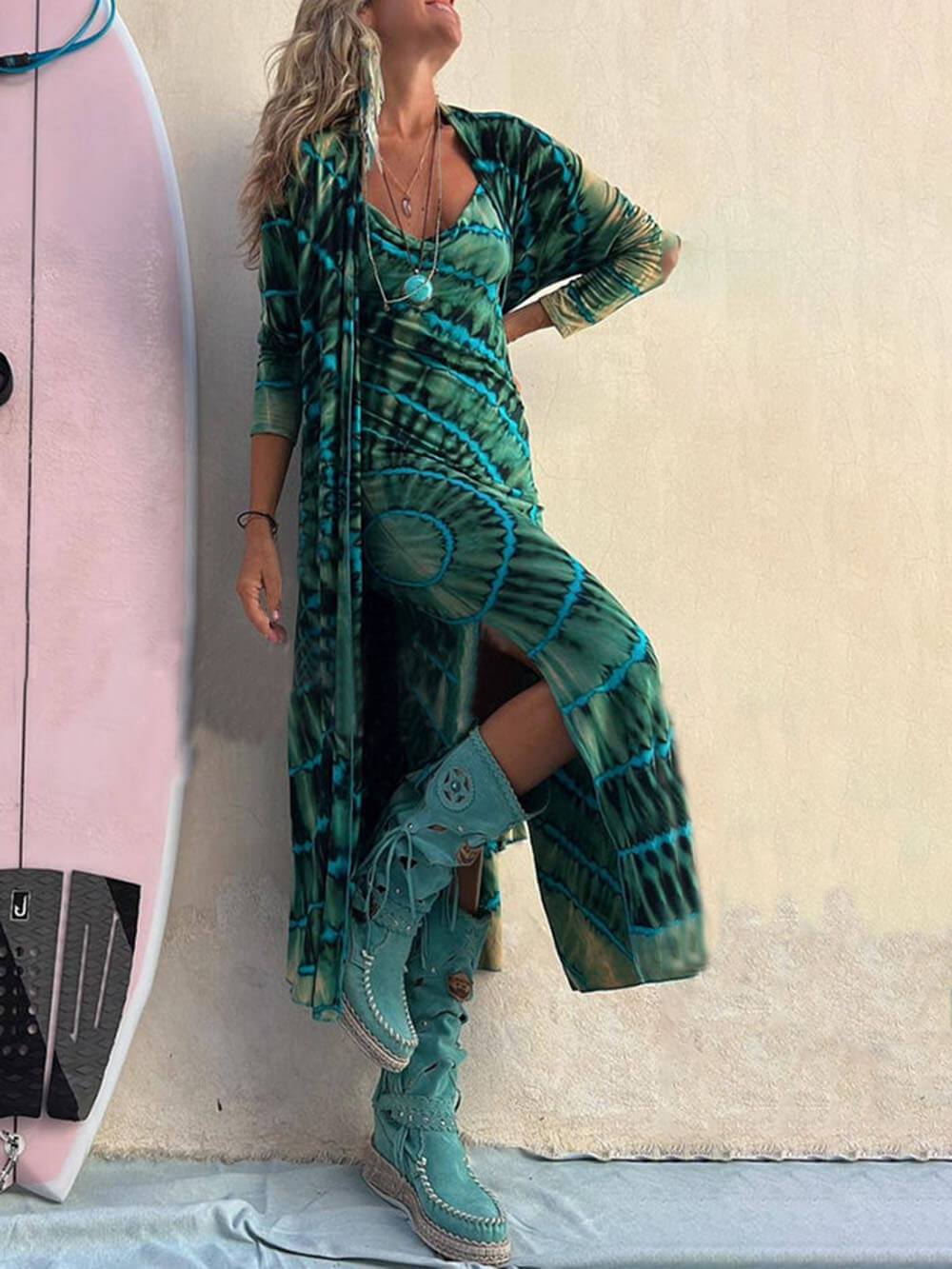 Elevate your poolside or beach ensemble with our Tie Dye Print Open Front Long Sleeve Pocketed Cover-Up. This stylish cover-up combines comfort, functionality, and trend-setting style, making it a must-have addition to your summer wardrobe.