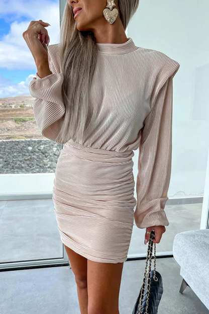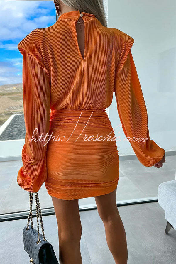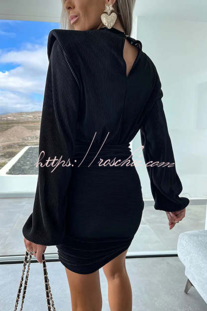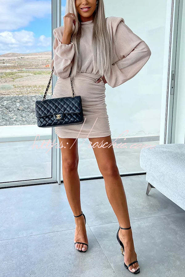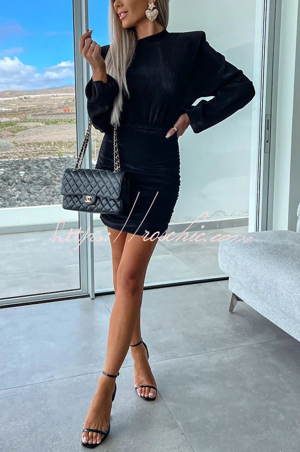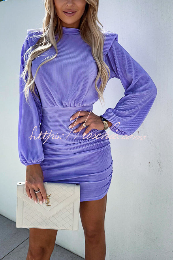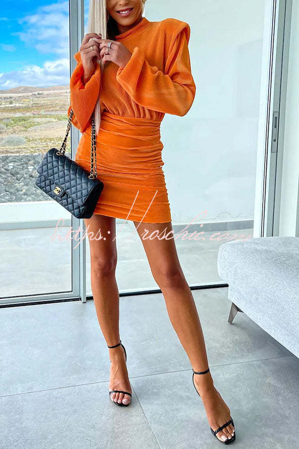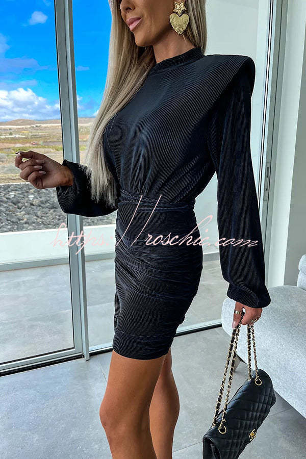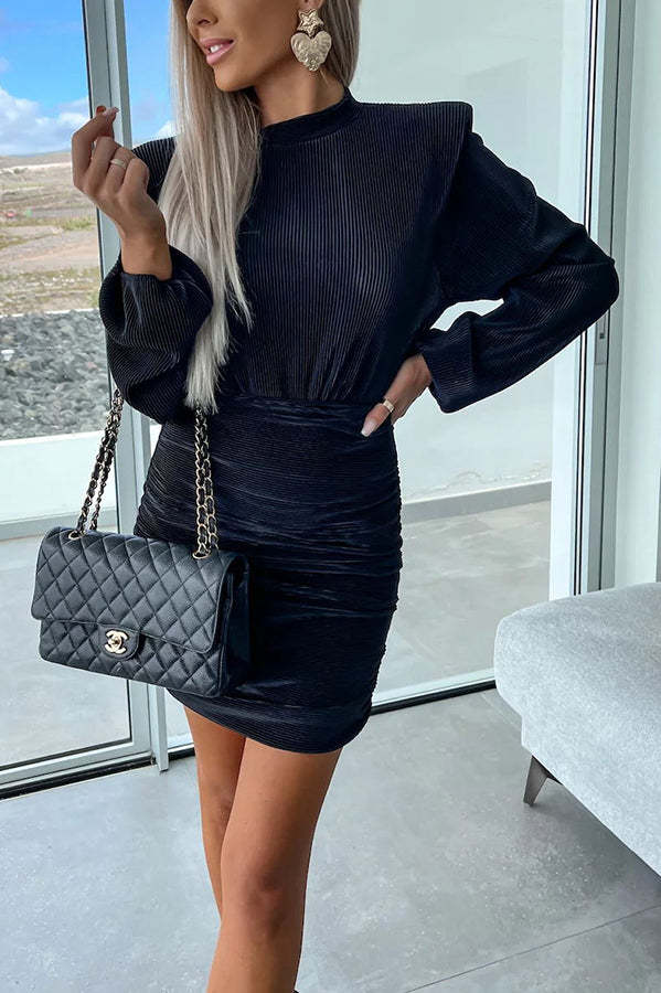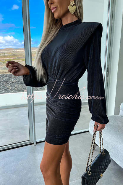 Tolly Padded Shoulder Balloon Sleeve Ruched Ribbed Mini Dress