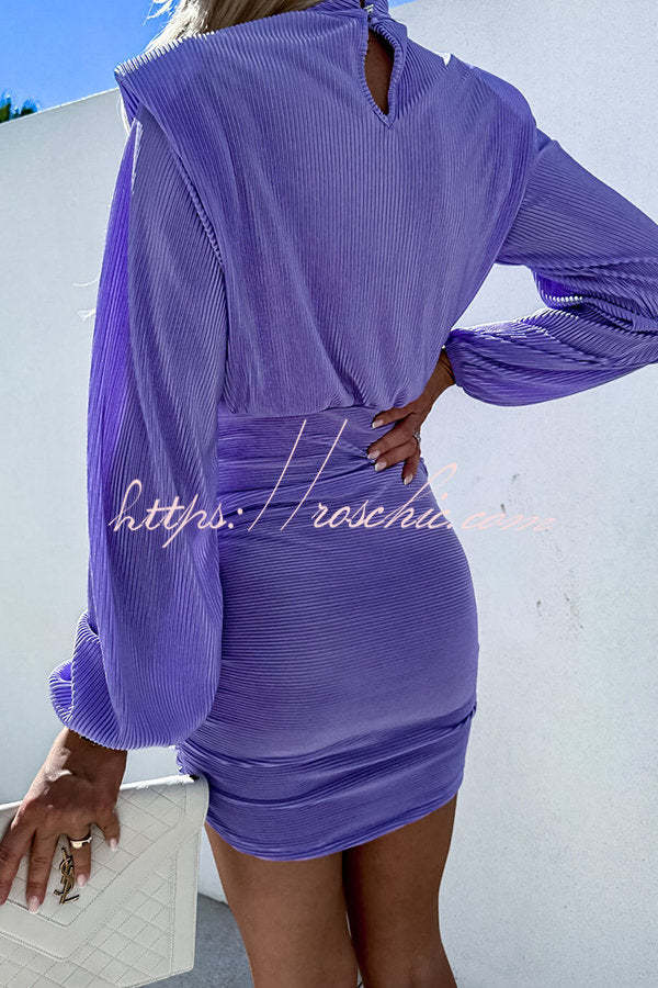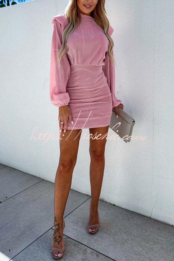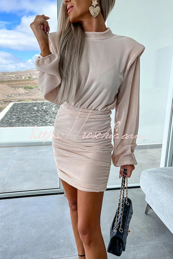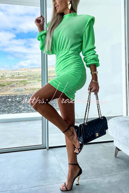 Tolly Padded Shoulder Balloon Sleeve Ruched Ribbed Mini Dress