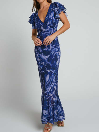 Introducing our V-Neck Flutter Sleeve Maxi Dress, the epitome of effortless elegance for your chic and stylish wardrobe.