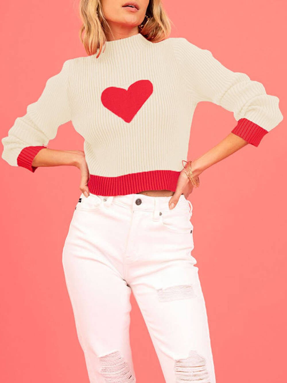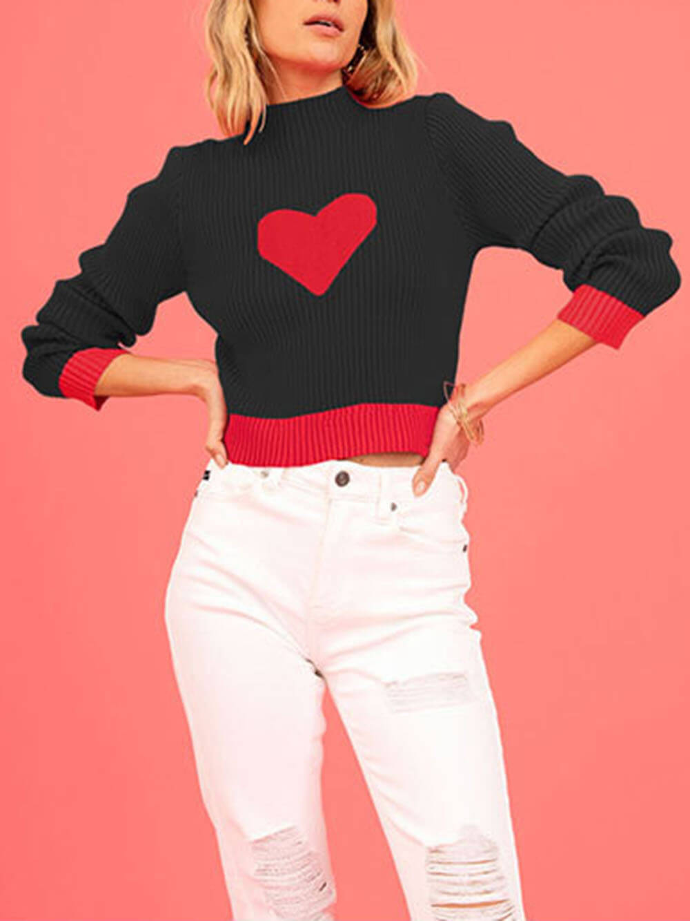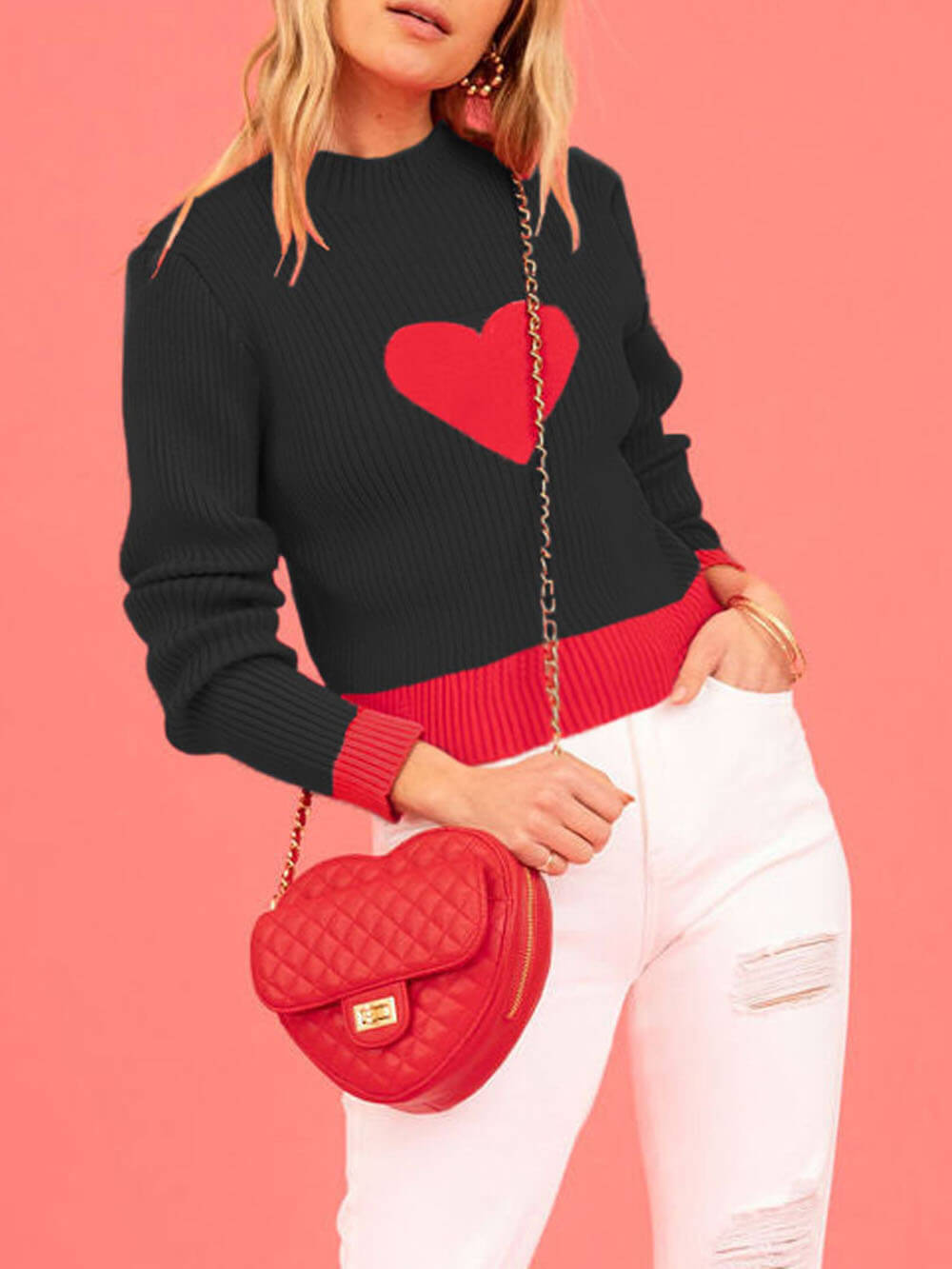 Love is in the Details: This sweater features a lovely heart-shaped knit pattern, adding a touch of romance to your outfit.